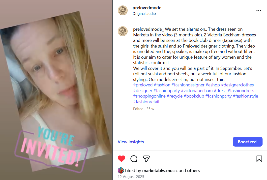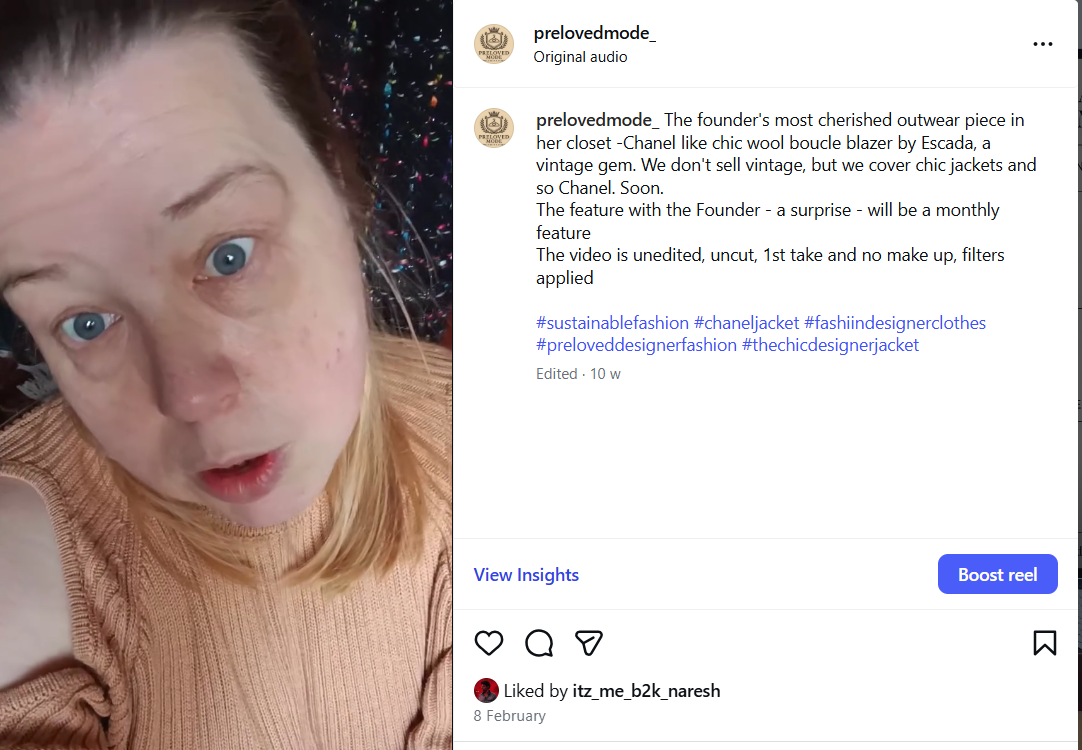 You find us on Tik Tok for this reason and the videos will be focused solely on the fashion, preloved designer items and styling, the insight into our eshop, new arrivals and the list goes on. I will be featured once per week, it apparently also brings the authenticity as well as trust into the business to see me, my face as well as interact with the owner.